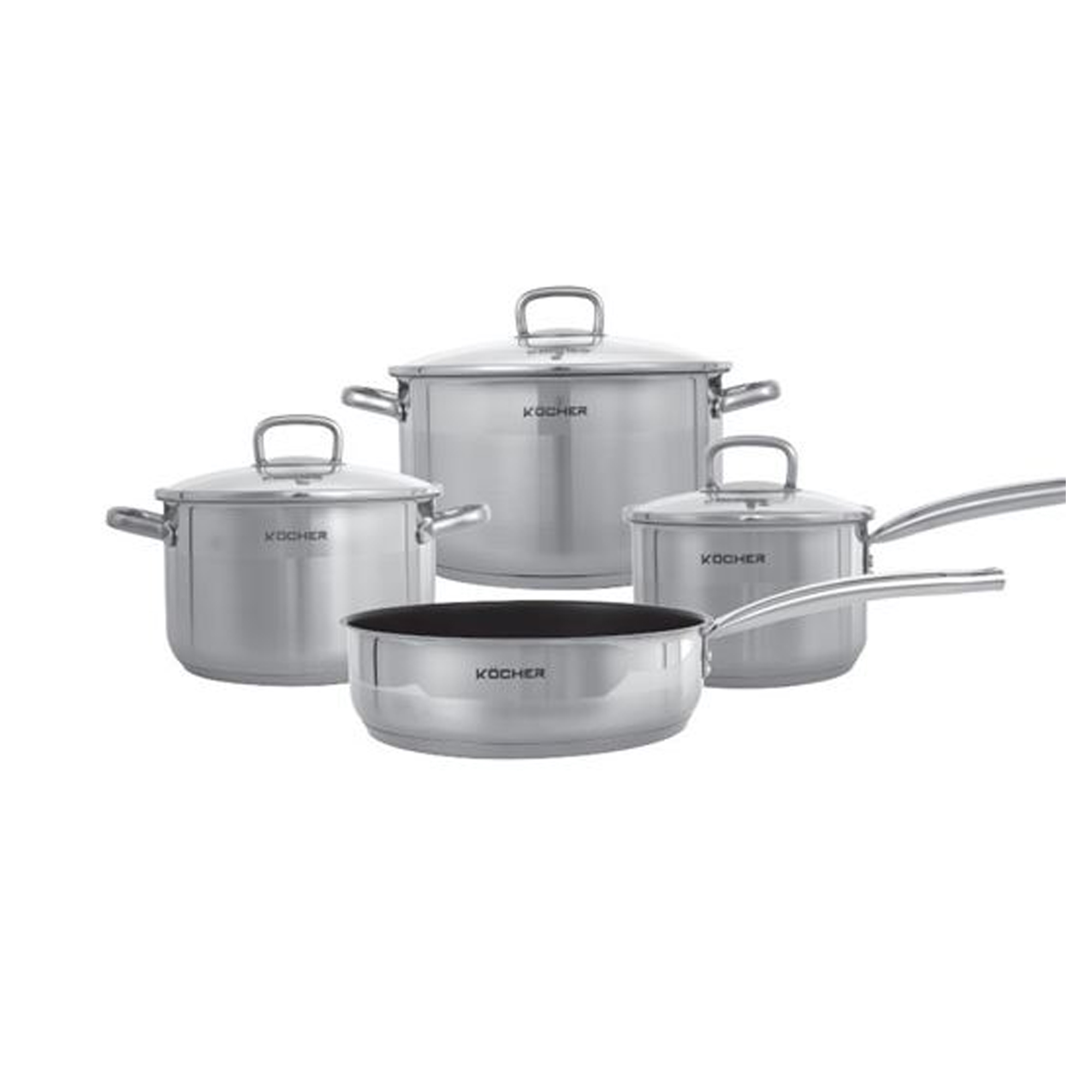 Bộ nồi Kocher Lubeck Pro 4 món này được chọn lọc để phù hợp với nhu cầu nấu ăn hàng ngày: một nồi luộc lớn cho súp hoặc pasta, một nồi hầm đa dụng cho các món kho, một nồi nhỏ cho việc nấu sốt hoặc hâm nóng, kèm nắp kính cường lực để dễ dàng quan sát trong lúc nấu. Tất cả đều sử dụng đáy 5 lớp liên kết để truyền nhiệt nhanh và ổn định.