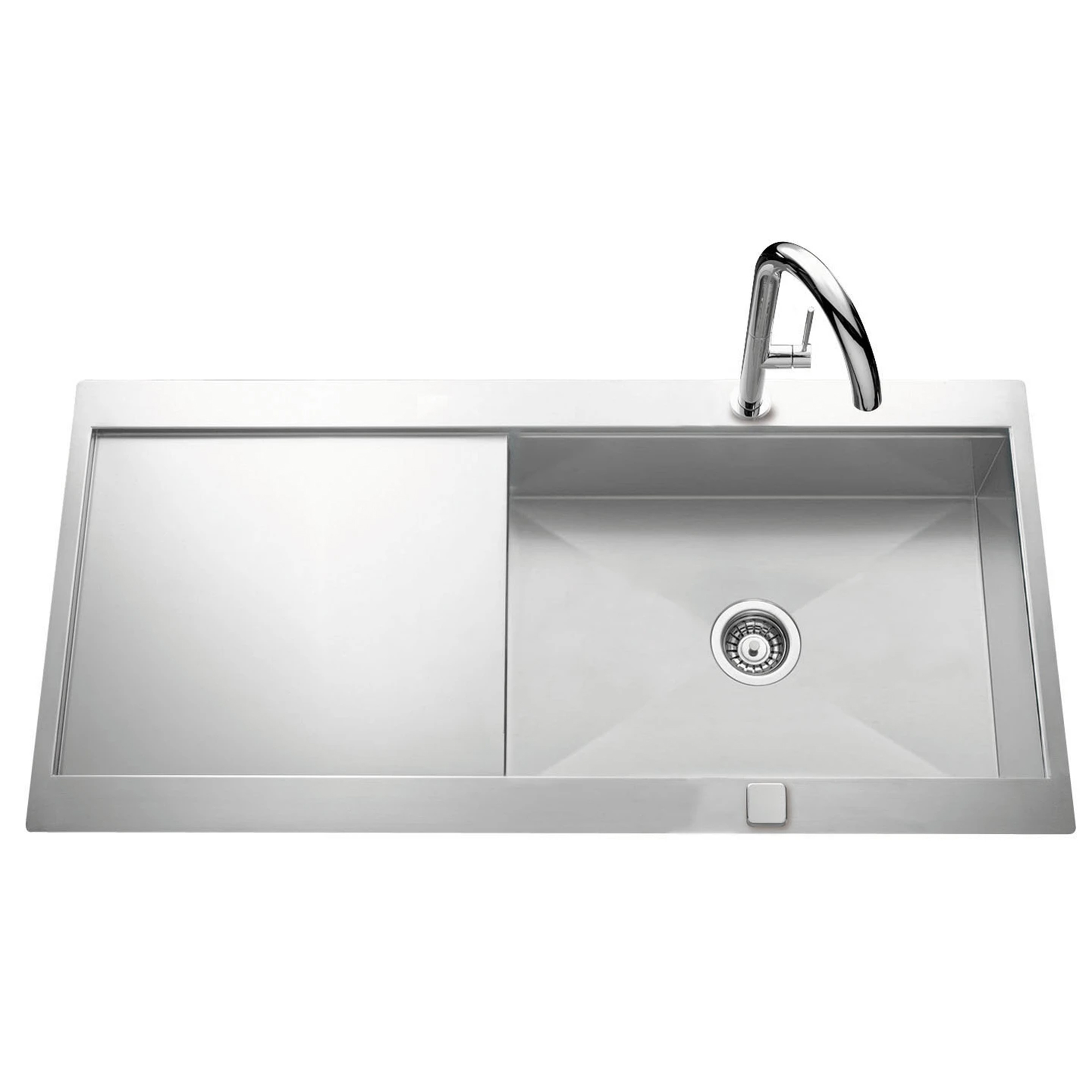 Chậu được trang bị hệ thống space-saving drain giúp tối ưu hóa không gian dưới hộc rửa. Đường ống gọn gàng, khoa học giúp người dùng dễ dàng bố trí thêm thùng rác, bộ lọc rác hoặc các thiết bị phụ kiện nhà bếp khác mà không bị vướng víu.